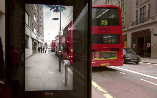 數(shù)字戶外,創(chuàng)意無限。比方說,百事在倫敦的候車亭屏幕上做過的AR廣告,讓等車的人可以看到UFO、飛人、老虎等動(dòng)態(tài)畫面,看起來就像是真的一樣,如果事先沒有準(zhǔn)備的話,人可能會(huì)被嚇到。